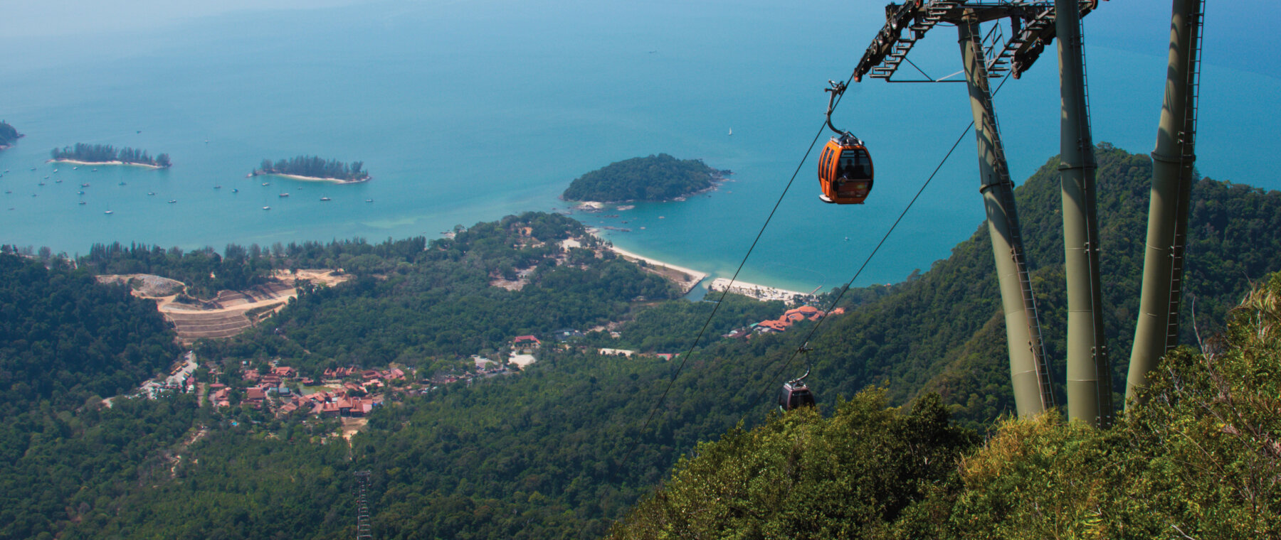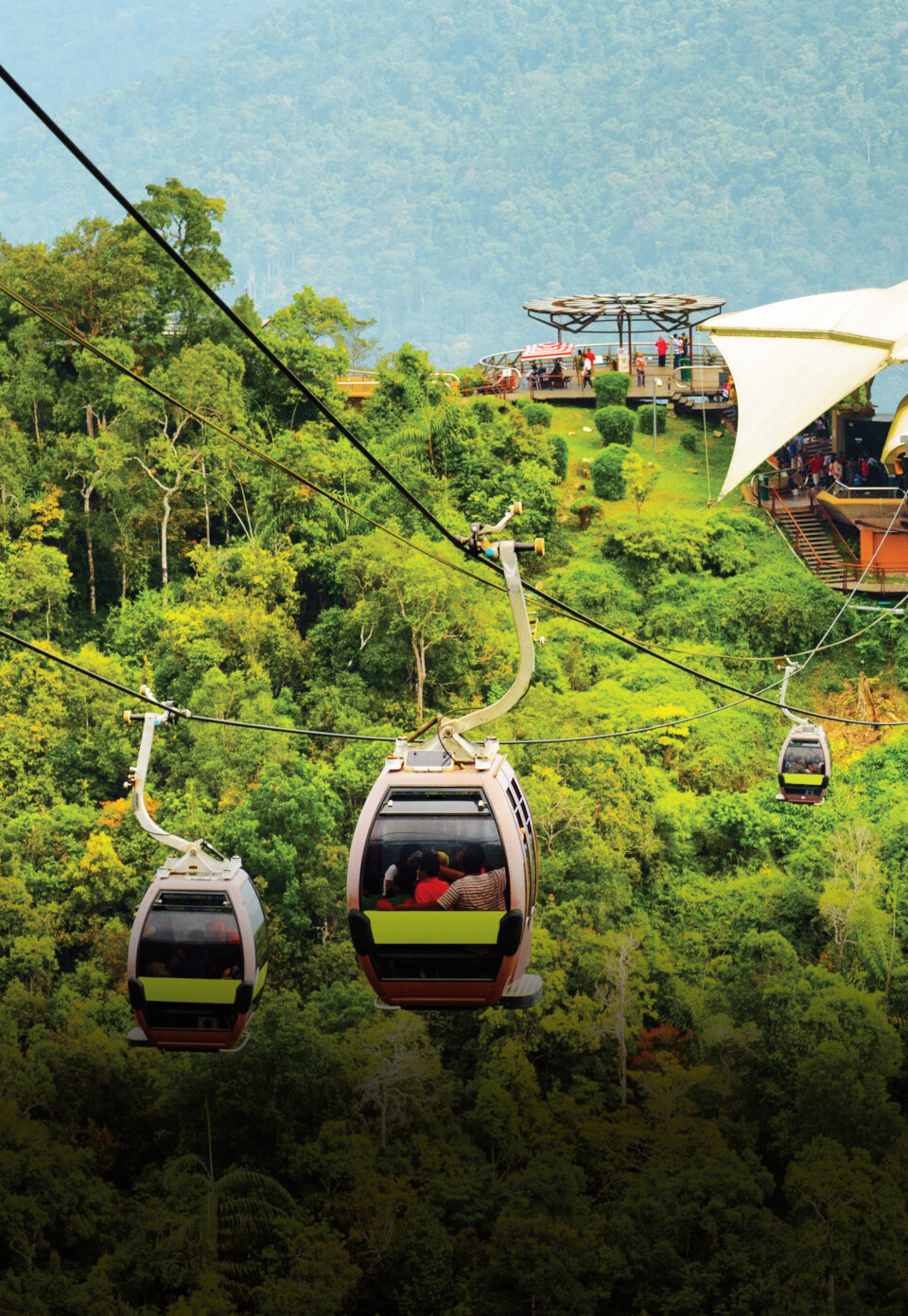 Langkawi Half Day Langkawi Cable Car Ride At 0900hrs, meet up with your driver at the resort lobby for your tour of the day. The Langkawi Cable Car, also known as Langkawi SkyCab, is one of the major attractions in Langkawi Island, Kedah, Malaysia. Providing an aerial link from the Oriental Village at Teluk Burau to the peak of Gunung Machinchang; the total length of the Langkawi Cable Car is 2.2 km, with a journey time from the base to the top of around 15 minutes. At the top, walk across the famous Sky Bridge — an 82m-high curved suspension bridge hanging 100m above the ground, with panoramic views over lush rainforest and surrounding islands. End the tour with a visit to the 3D Art Gallery, located within the vicinity of Oriental Village at the base of the cable car. After the tour, return to your hotel.